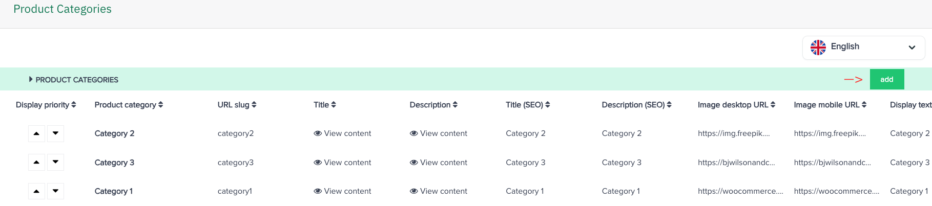 2.Add a product category, add Product category name, url slug, and other required information, then click on save;
