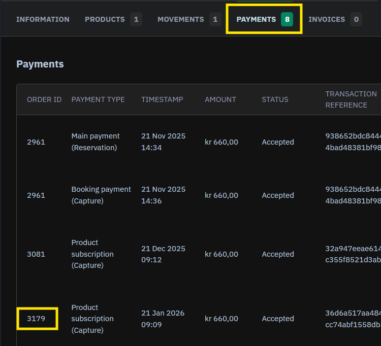 - Go to the current order and open the payments tab.