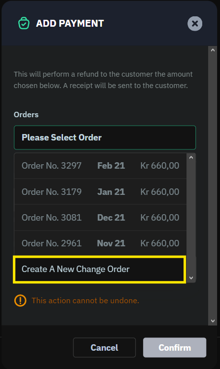 - Choose the change order you want to refund.